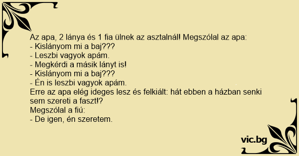 Az apa, 2 lánya és 1 fia ülnek az asztalnál! Megszólal az apa: