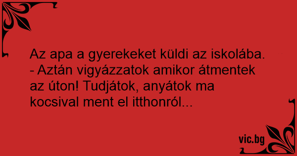 - Aztán vigyázzatok amikor átmentek az úton! Tudjátok, anyátok ma kocsival ment el itthonról...