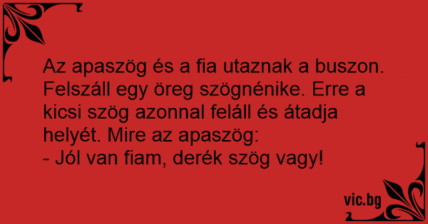 Az apaszög és a fia utaznak a buszon. Felszáll egy öreg szögnénike. Erre a kicsi szög azonnal feláll és átadja helyét. Mire az apaszög:
