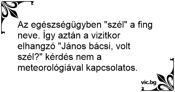 Az egészségügyben "szél" a fing neve. Így aztán a vizitkor elhangzó "János bácsi, volt szél?" kérdés nem a meteorológiával kapcsolatos.