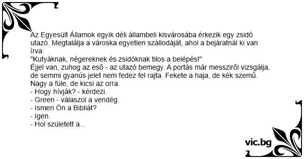 Az Egyesült Államok egyik déli állambeli kisvárosába érkezik egy zsidó utazó. Megtalálja a városka egyetlen szállodáját, ahol a bejáratnál ki van írva: