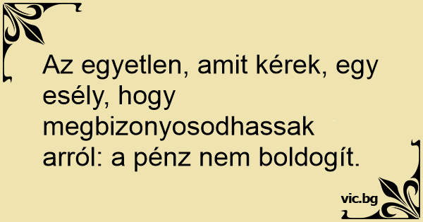 Az egyetlen, amit kérek, egy esély, hogy megbizonyosodhassak arról: a pénz nem boldogít.