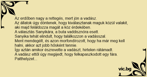 Patthelyzet alakult ki: a vadász nem mert lemászni, Sanyika, a hülye vaddisznó pedig nem tudta, hogy mit is kell ilyenkor csinálni.