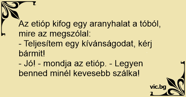 - Jó! - mondja az etióp. - Legyen benned minél kevesebb szálka!