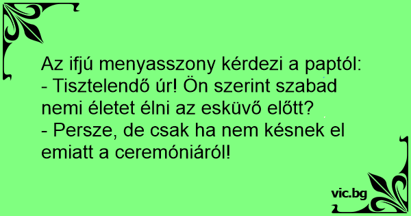 - Tisztelendő úr! Ön szerint szabad nemi életet élni az esküvő előtt?