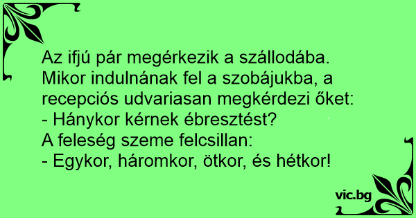 Az ifjú pár megérkezik a szállodába. Mikor indulnának fel a szobájukba, a recepciós udvariasan megkérdezi őket: