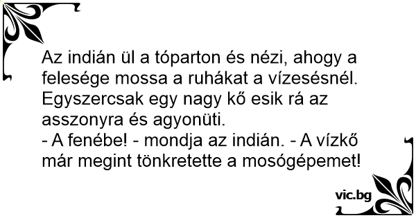 - A fenébe! - mondja az indián. - A vízkő már megint tönkretette a mosógépemet!