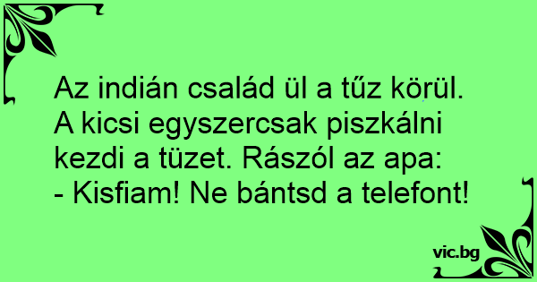 Az indián család ül a tűz körül. A kicsi egyszercsak piszkálni kezdi a tüzet. Rászól az apa: