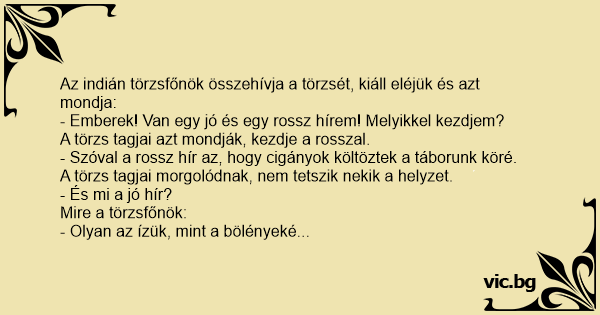 Az indián törzsfőnök összehívja a törzsét, kiáll eléjük és azt mondja: