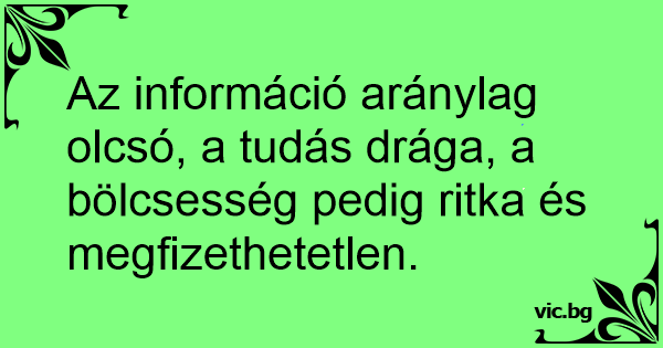 Az információ aránylag olcsó, a tudás drága, a bölcsesség pedig ritka és megfizethetetlen.