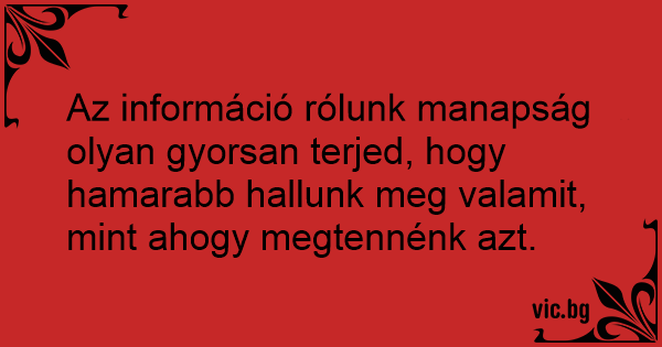 Az információ rólunk manapság olyan gyorsan terjed, hogy hamarabb hallunk meg valamit, mint ahogy megtennénk azt.