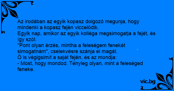 Egyik nap, amikor az egyik kolléga megsimogatja a fejét, és így szól: