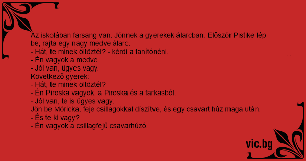 - Hát, te minek öltöztél? - kérdi a tanítónéni.