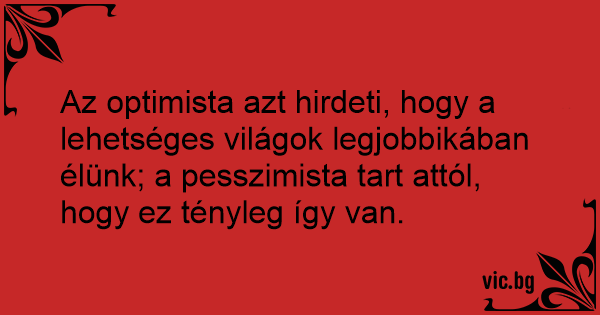 Az optimista azt hirdeti, hogy a lehetséges világok legjobbikában élünk; a pesszimista таrт attól, hogy ez tényleg így van.