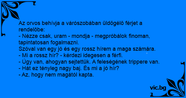 - Úgy van, ahogyan sejtettük. A feleségének trippere van.