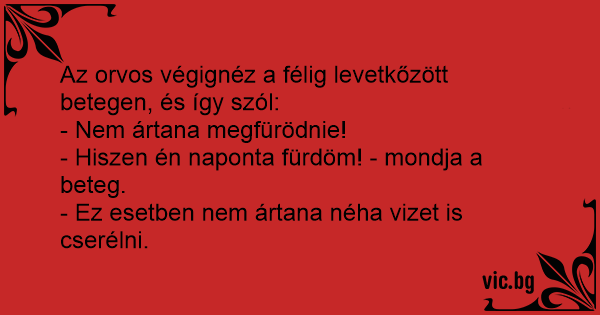 - Hiszen én naponta fürdöm! - mondja a beteg.