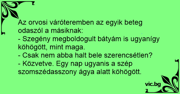 Az orvosi váróteremben az egyik beteg odaszól a másiknak: