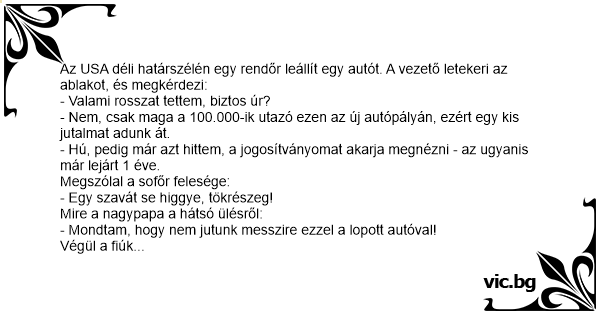 - Hú, pedig már azt hittem, a jogosítványomat akarja megnézni - az ugyanis már lejárt 1 éve.