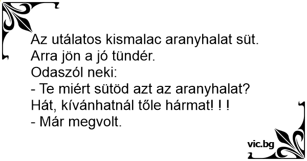 - Te miért sütöd azt az aranyhalat? Hát, kívánhatnál tőle hármat! ! !