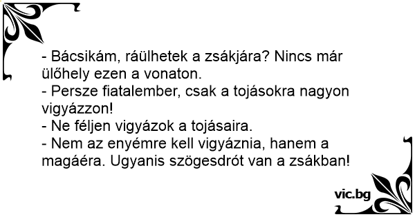 - Bácsikám, ráülhetek a zsákjára? Nincs már ülőhely ezen a vonaton.