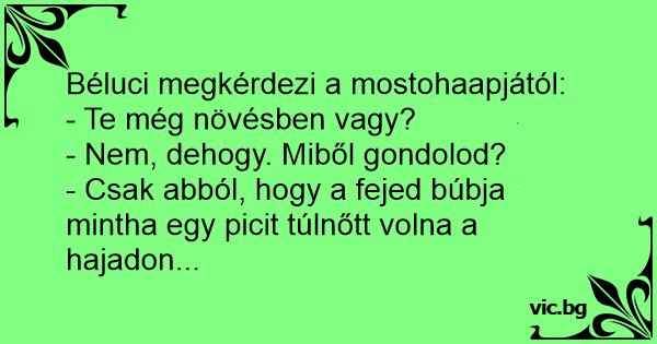 - Csak abból, hogy a fejed búbja mintha egy picit túlnőtt volna a hajadon...