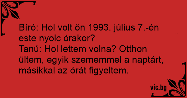 Tanú: Hol lettem volna? Otthon ültem, egyik szememmel a naptárt, másikkal az órát figyeltem.