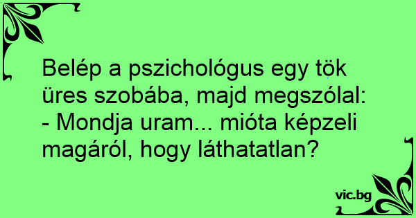 Belép a pszichológus egy tök üres szobába, majd megszólal: