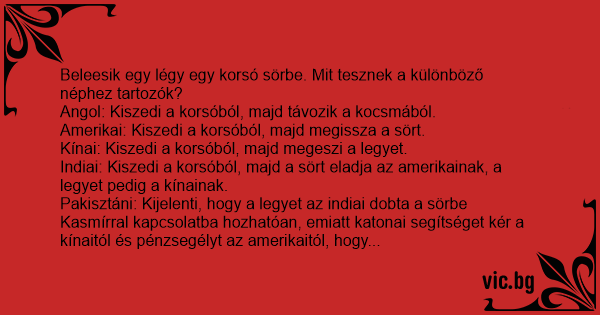 Beleesik egy légy egy korsó sörbe. Mit tesznek a különböző néphez tartozók?