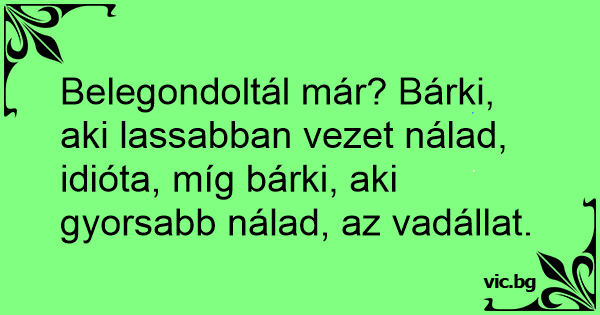 Belegondoltál már? Bárki, aki lassabban vezet nálad, idióta, míg bárki, aki gyorsabb nálad, az vadállat.