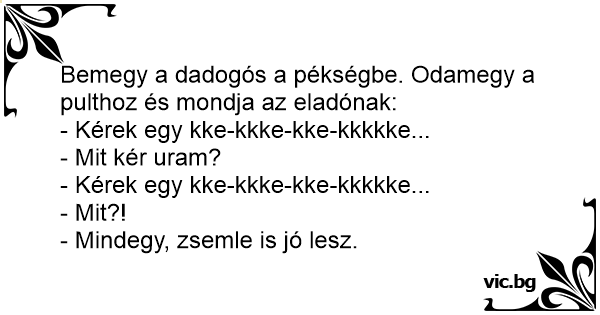 Bemegy a dadogós a pékségbe. Odamegy a pulthoz és mondja az eladónak: