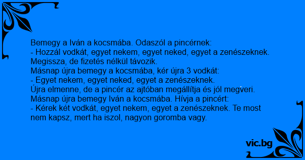 Bemegy a Iván a kocsmába. Odaszól a pincérnek:
