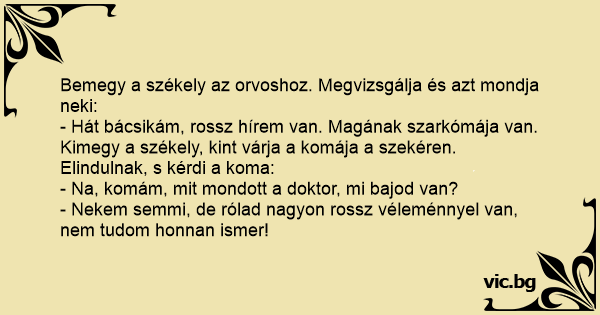 Bemegy a székely az orvoshoz. Megvizsgálja és azt mondja neki:
