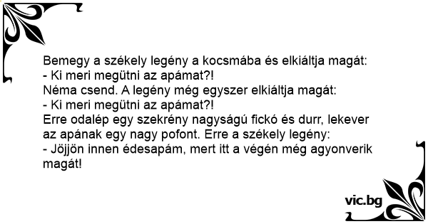 Erre odalép egy szekrény nagyságú fickó és durr, lekever az apának egy nagy pofont. Erre a székely legény: