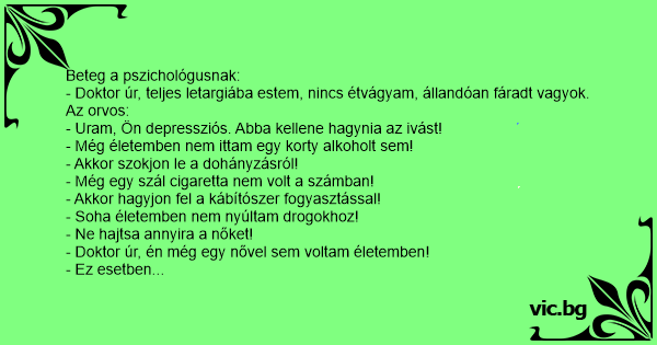 - Doktor úr, teljes letargiába estem, nincs étvágyam, állandóan fáradt vagyok.