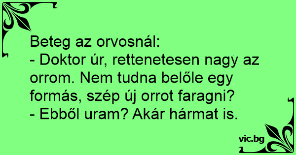 - Doktor úr, rettenetesen nagy az orrom. Nem tudna belőle egy formás, szép új orrot faragni?