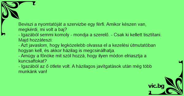 Beviszi a nyomtatóját a szervizbe egy férfi. Amikor készen van, megkérdi, mi volt a baj?