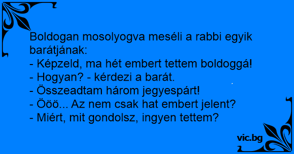 Boldogan mosolyogva meséli a rabbi egyik barátjának: