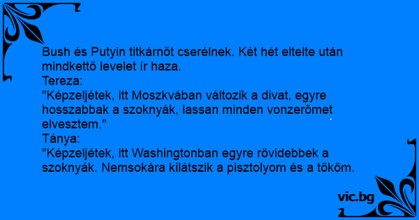Bush és Putyin titkárnőt cserélnek. Két hét eltelte után mindkettő levelet ír haza.