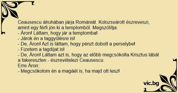 - De, Áron! Láttam azt is, hogy az előbb megcsókolta Krisztus lábát a fakereszten - észrevételezi Ceausescu.