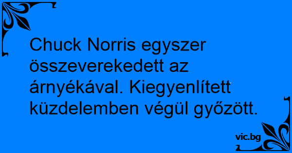 Chuck Norris egyszer összeverekedett az árnyékával. Kiegyenlített küzdelemben végül győzött.
