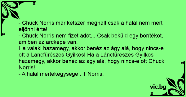 - Chuck Norris már kétszer meghalt csak a halál nem mert eljönni érte!