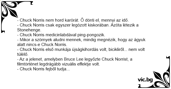 - Chuck Norris nem hord karórát. Ő dönti el, mennyi az idő.