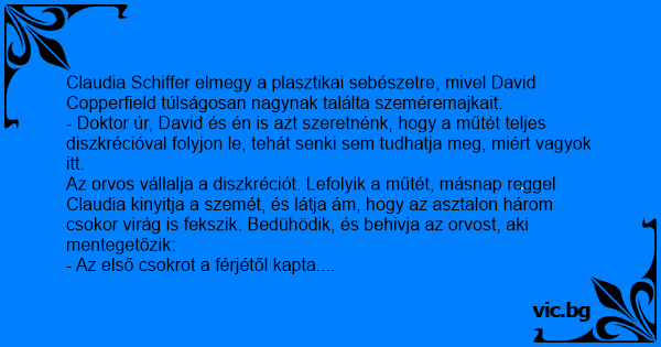 Claudia Schiffer elmegy a plasztikai sebészetre, mivel David Copperfield túlságosan nagynak találta szeméremajkait.