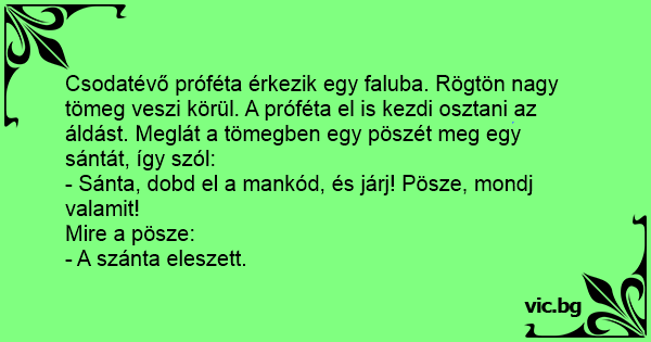 - Sánta, dobd el a mankód, és járj! Pösze, mondj valamit!