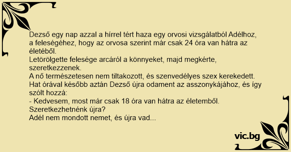 - Kedvesem, most már csak 18 óra van hátra az életemből. Szeretkezhetnénk újra?