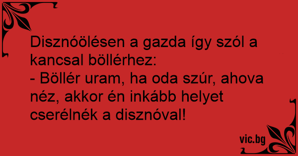 - Böllér uram, ha oda szúr, ahova néz, akkor én inkább helyet cserélnék a disznóval!