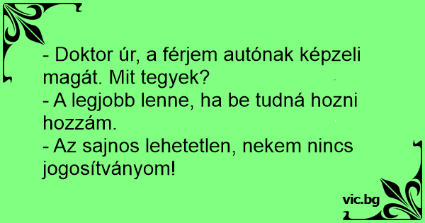 - Doktor úr, a férjem autónak képzeli magát. Mit tegyek?
