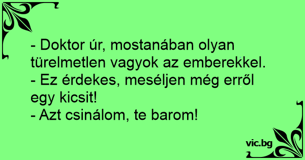 - Doktor úr, mostanában olyan türelmetlen vagyok az emberekkel.