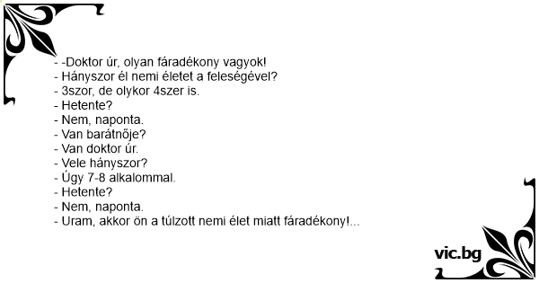 - Uram, akkor ön a túlzott nemi élet miatt fáradékony!