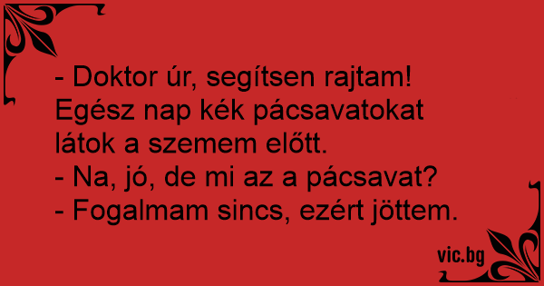 - Doktor úr, segítsen rajtam! Egész nap kék pácsavatokat látok a szemem előtt.